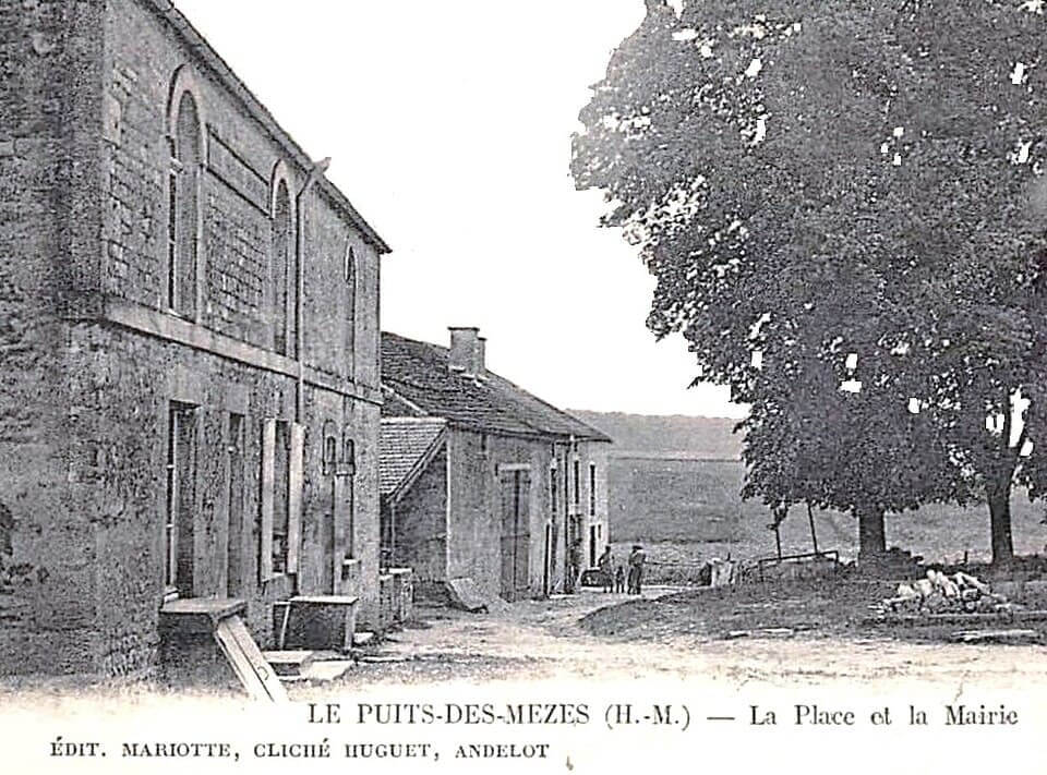 « Le Puits-des-Mèzes (52) – Vue ancienne de la Place et de la Mairie » – © C. DIMEY, Wikimedia Commons, licence CC BY-SA 4.0